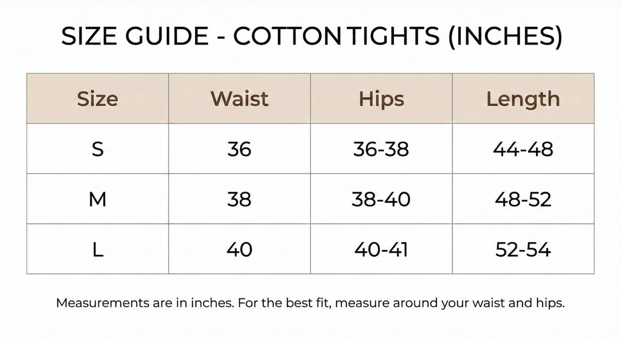 Premium cotton modest tights made with 97% cotton and 3% lycra for breathable comfort and gentle stretch. Ideal for everyday modest layering.